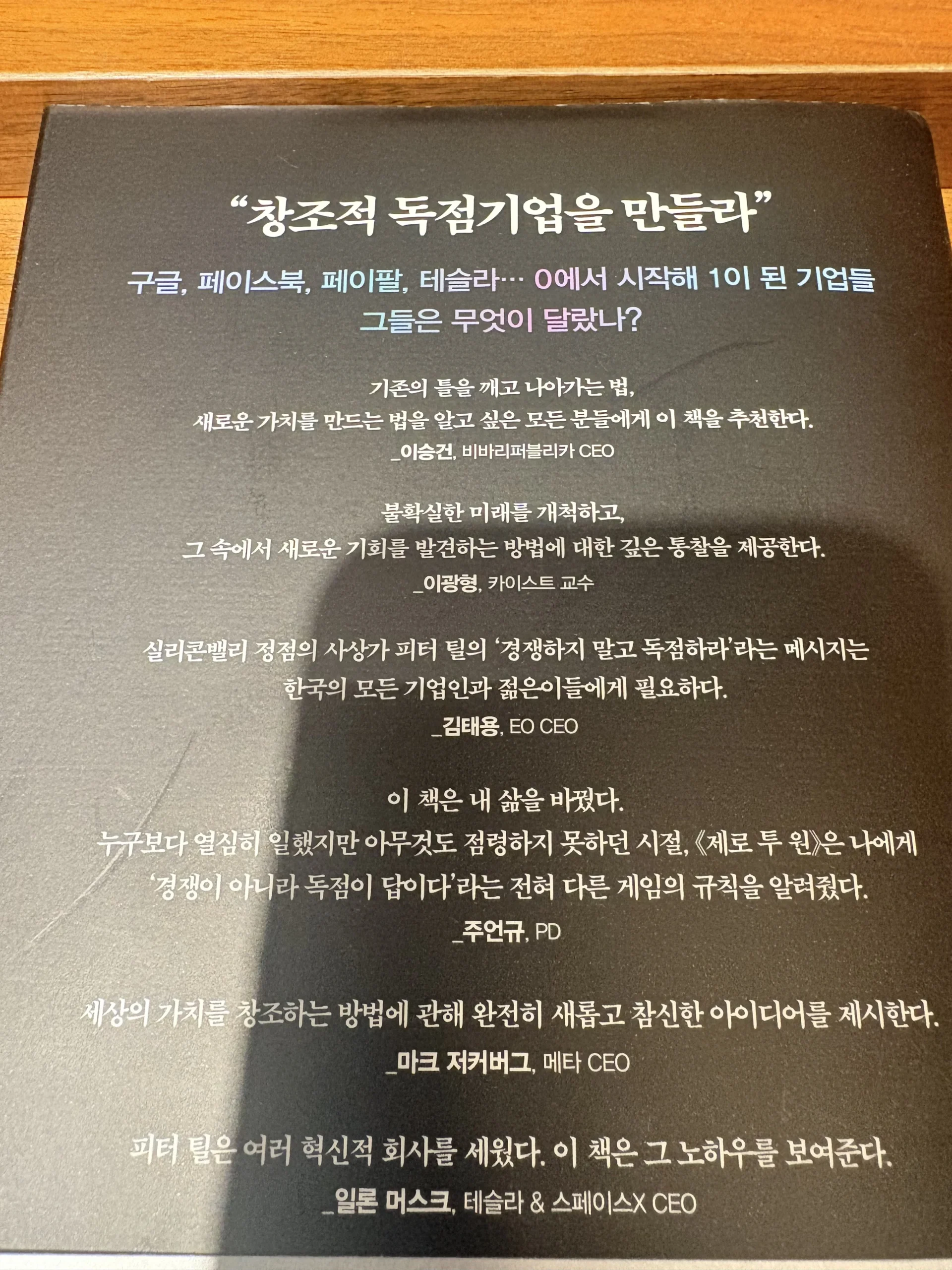 하지만 피터 틸은 이 교훈들이 오히려 틀렸다고 주장합니다. 진정으로 세상을 바꾸고 성공하려면 정반대의 원칙이 필요합니다.